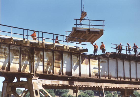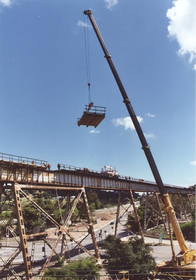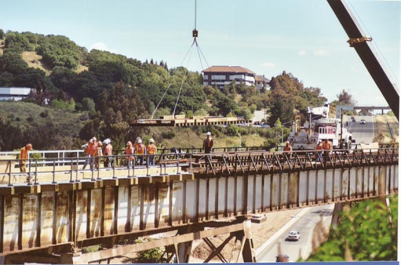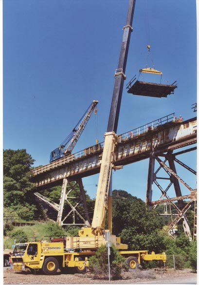 The following two sets of photos of the bridge section replacement of the Muir Bridge were taken by Paul Lanyi in